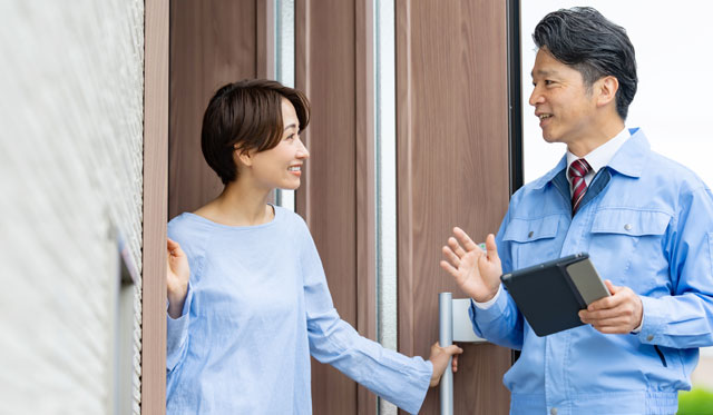 お引き渡し後も、定期的にご自宅を訪問し、住まいに関するお困りごとやご相談に対応いたします。