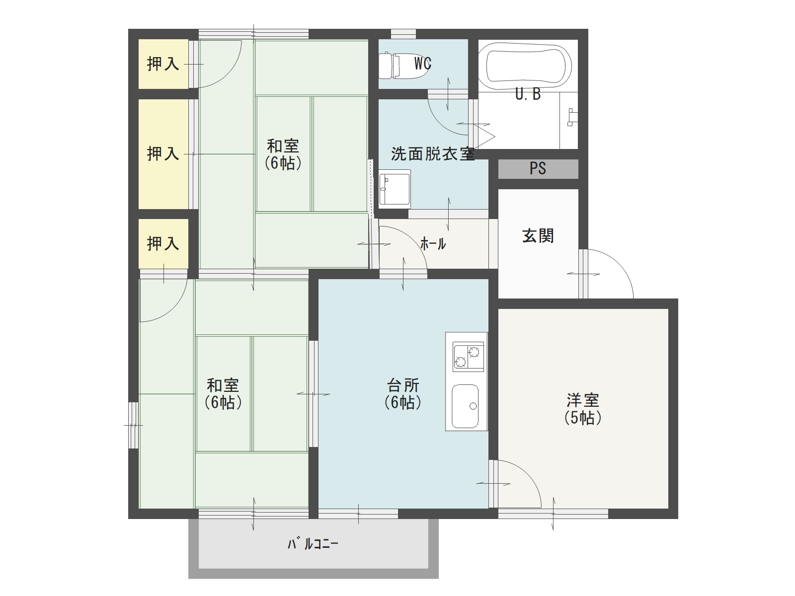 ラフォーレ若松B棟 軽量鉄骨造1階/2階建て 3DK