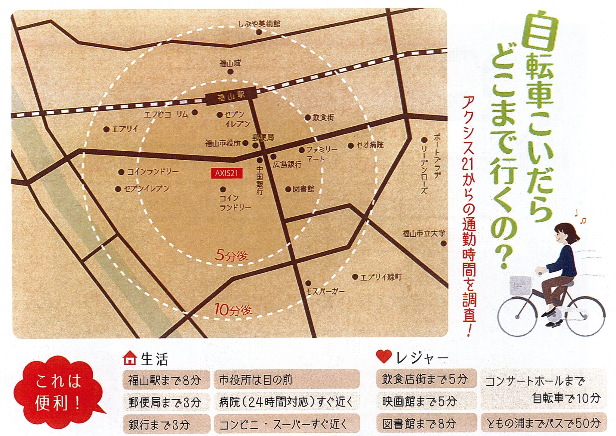- 駅や金融機関、スーパーやコンビニ、飲食店や図書館など、便利施設が充実しています。