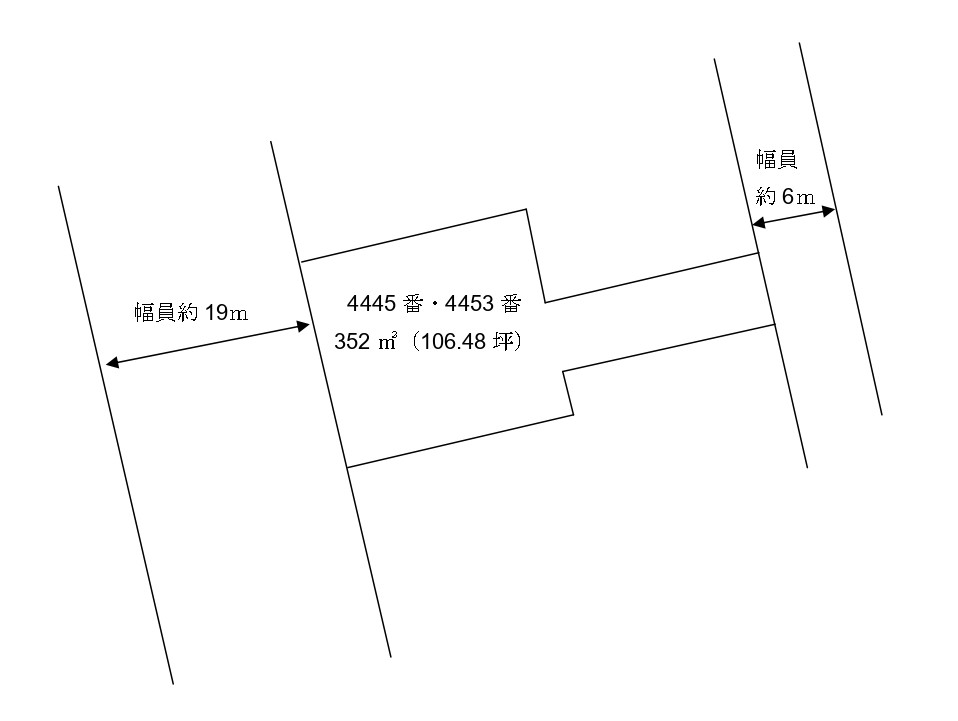 - ・西側県道(幅員約19m)に約15m接面 / 東側市道(幅員約6m)に約5.5m接面