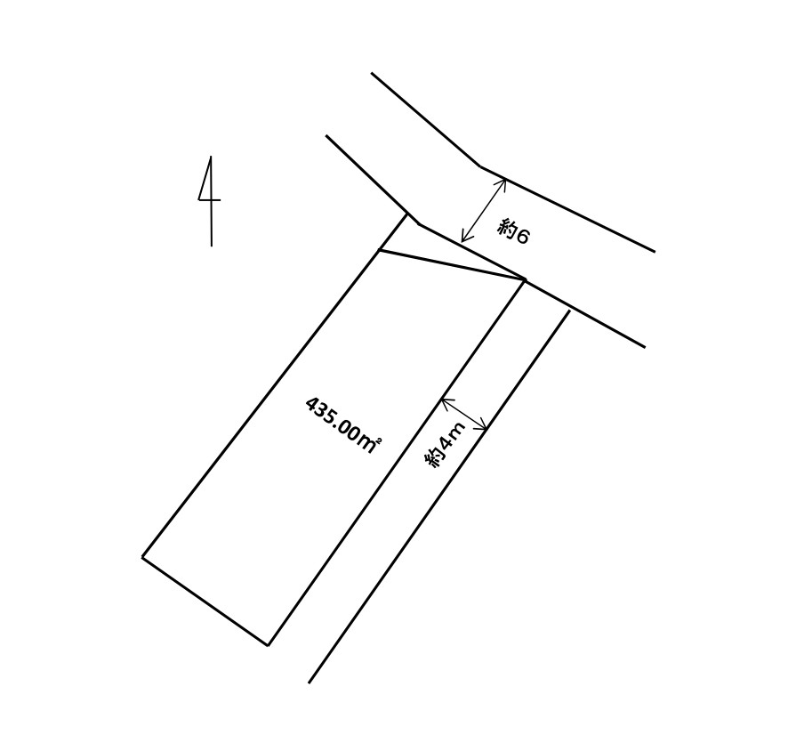 - ・北側市道(幅員約6m)に約11m接面・東南側法42条2項道路(幅員約3.7m)に約39m接面
