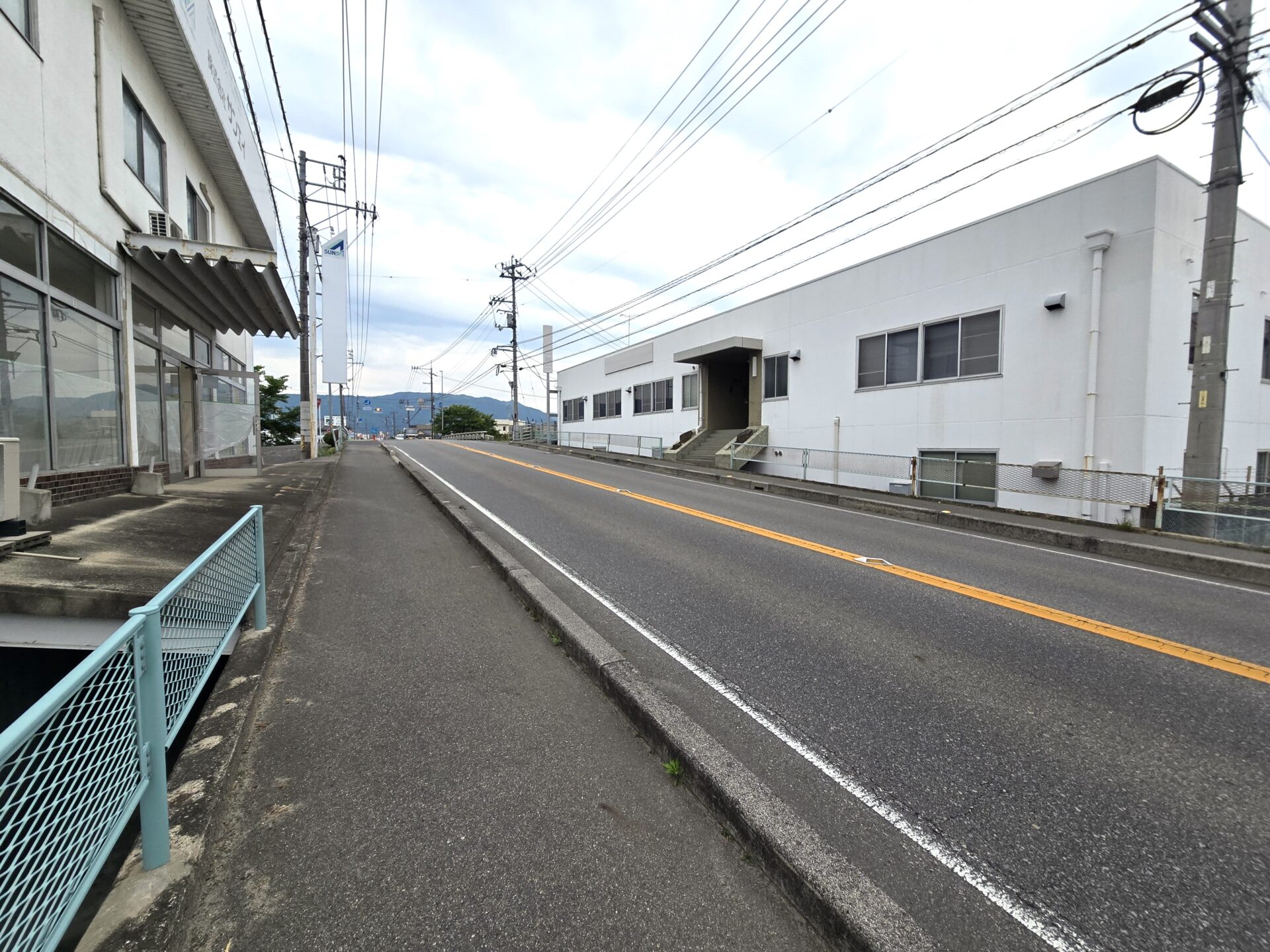 ・1階倉庫部分は道路より低くなっており、2階事務所・店舗部分が国道486号線と同じ高さです