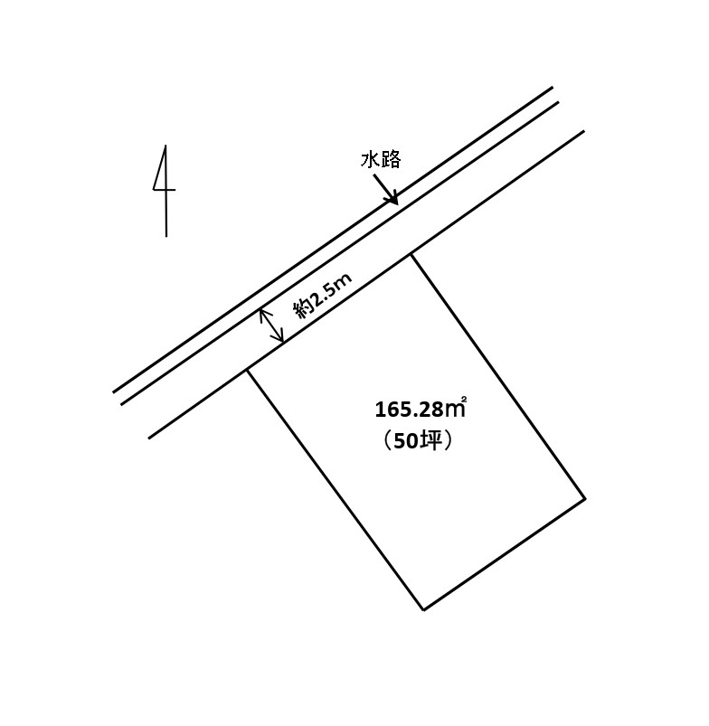 北西側の道(幅員約2.5m)に10.2m接道 前面道路は2項道路、再建築可