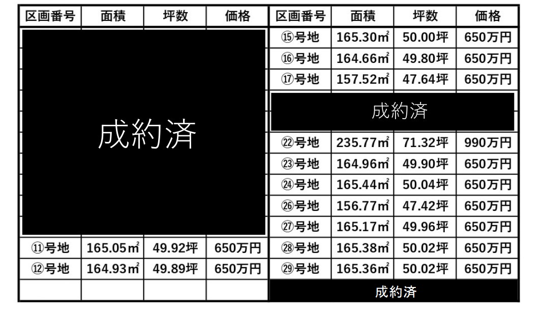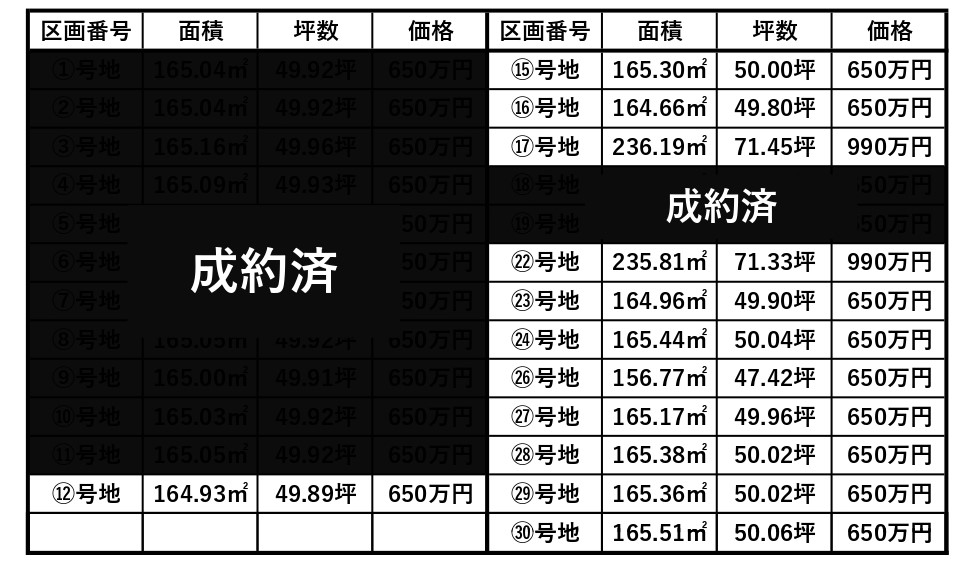 ◆22号地のみ990万円その他一律650万円