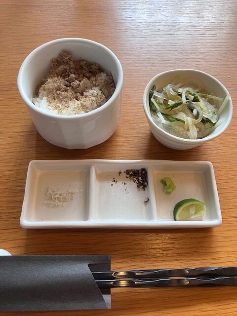 最初はお塩でいただいて、その後つけ汁でいただきました!