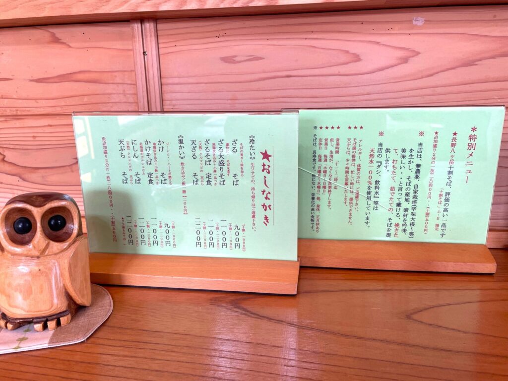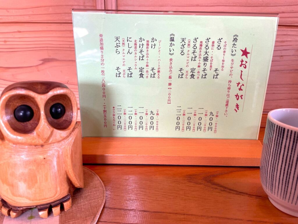 木目の綺麗な明るい店内で、腰のある美味しい手打ちそばを、ゆっくりと頂きました。