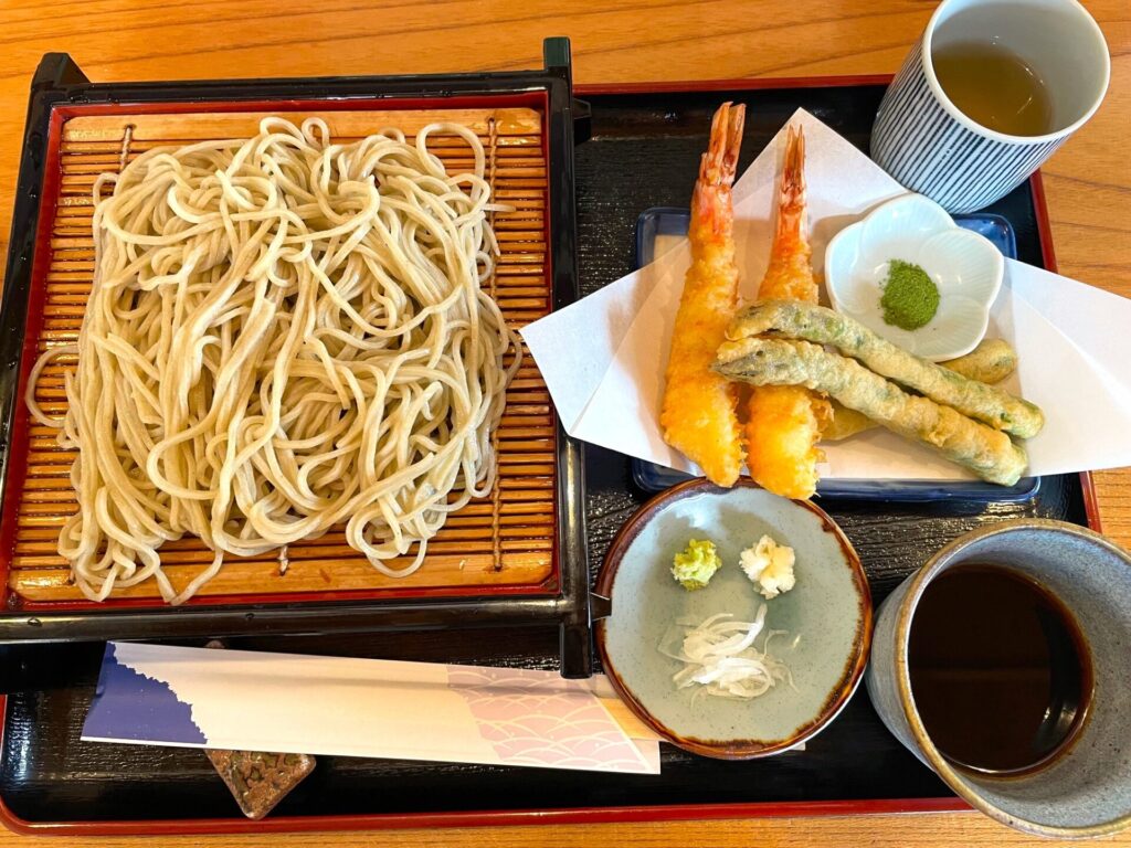 私たちが今回頂いたのは、【ざるそば定食】と【天然車エビの天ざるそば】です。