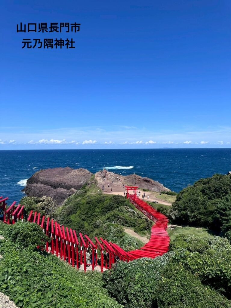 日本海に面した断崖絶壁の上に立つ、123基の朱色の鳥居が印象的な元乃隅神社