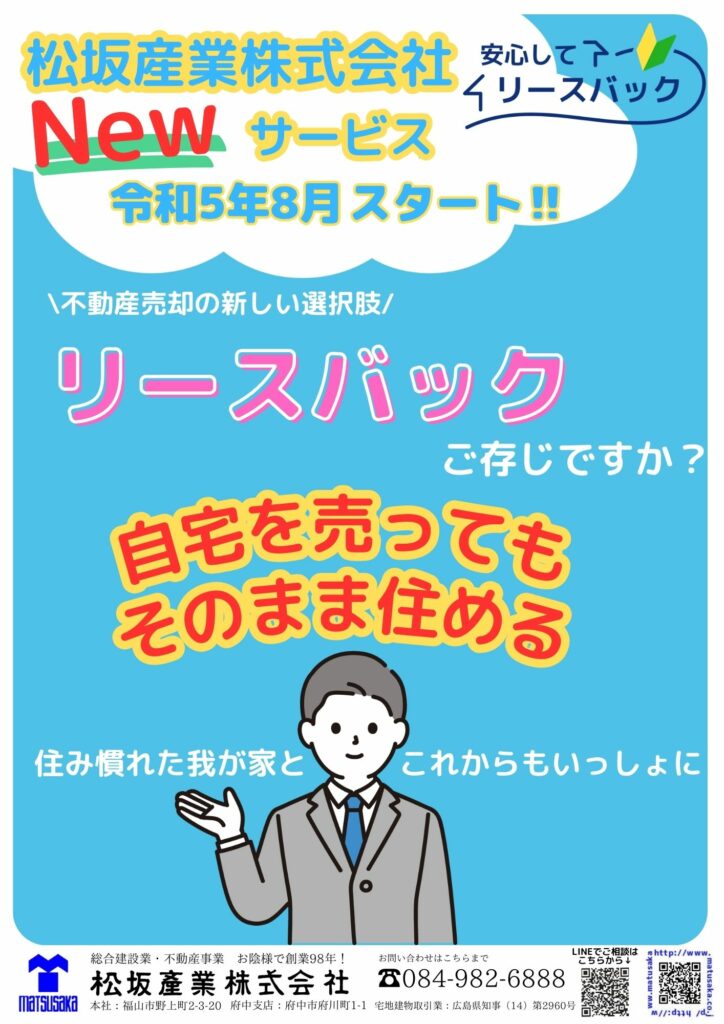 この度、松坂産業では新しいサービスとしてリースバックを8月よりスタートいたします!