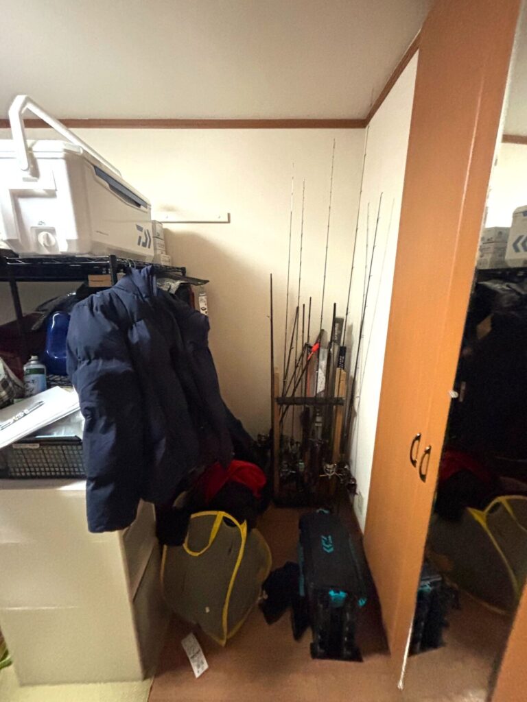 スチールラックを増やして収納を増やすのも良いけど、釣り竿を設置する場所が無くなる🤔