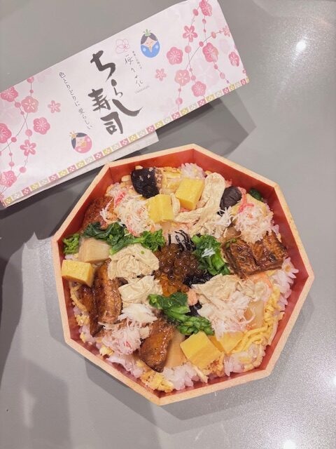 わが家では毎年盛大にお祝いをするわけではないのですが、今年は少しだけ季節の行事を楽しもうと思い、梅の花 のちらしずしをいただきました。