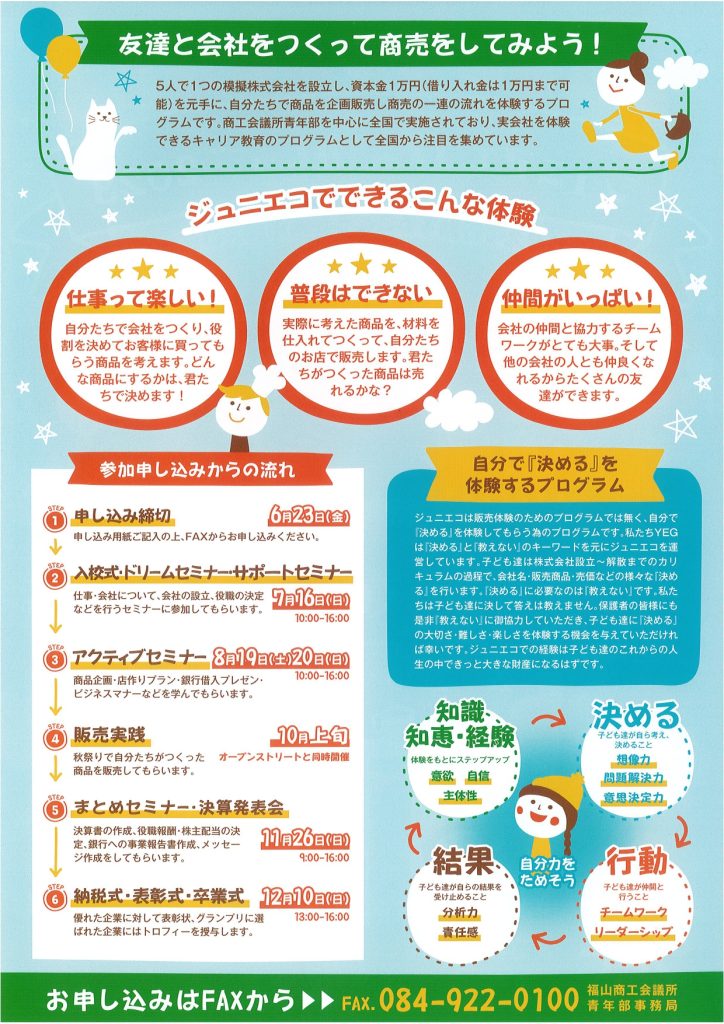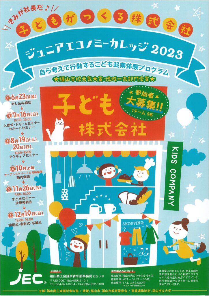 福山商工会議所青年部主催のジュニアエコカレッジ2023のご案内です♪