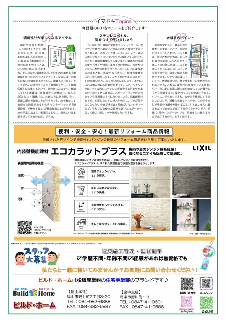 裏面には今話題のホットなニュースや最新リフォーム商品をご紹介しております。
