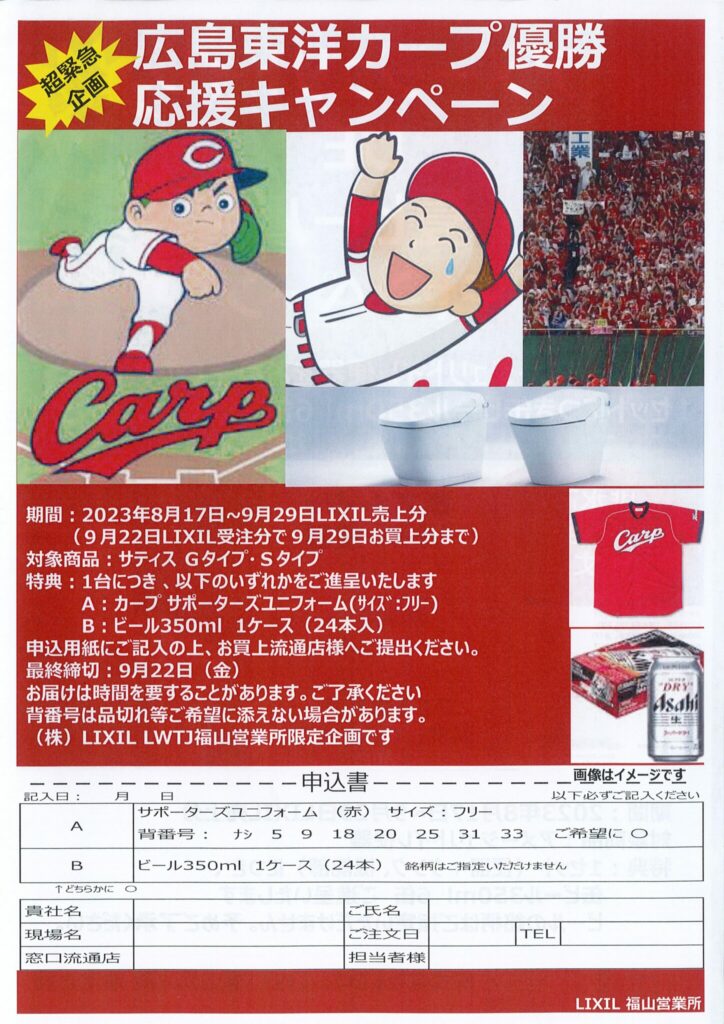 9月末までの期間限定で “理想のトイレを”キャンペーンとカープ応援キャンペーンを実施中!