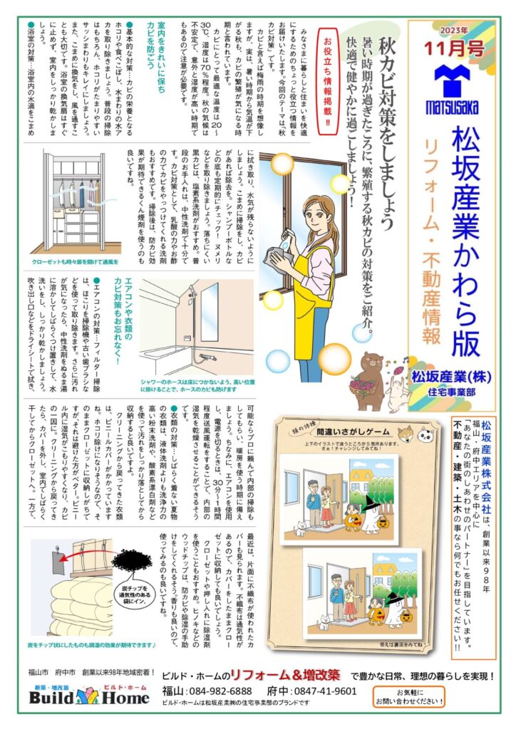 11月号かわら版では秋カビ対策に関する記事を掲載しております。