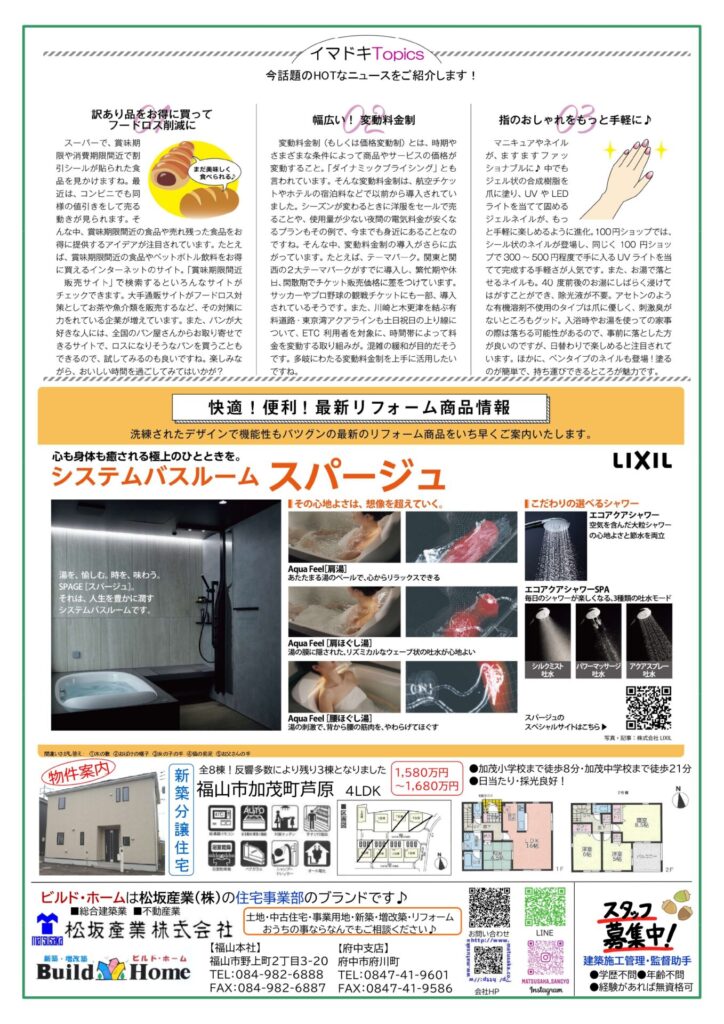 裏面には今話題のホットなニュースや最新リフォーム商品をご紹介しております。