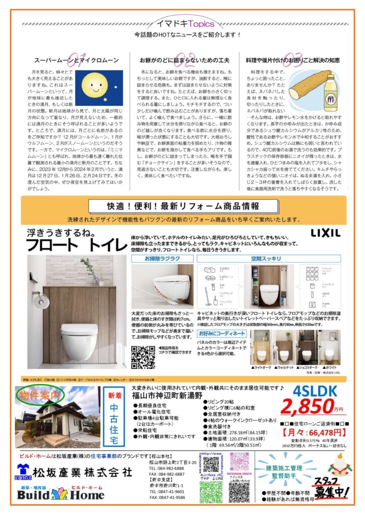 裏面には今話題のホットなニュースや最新リフォーム商品をご紹介しております。