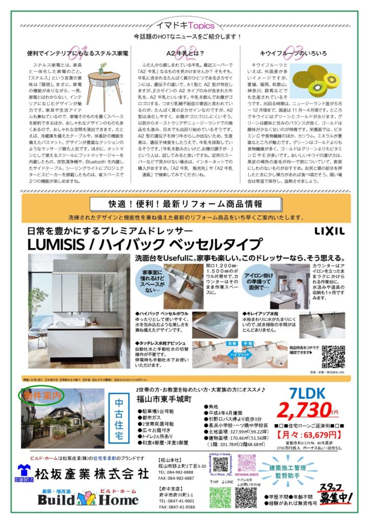 裏面には今話題のホットなニュースや最新リフォーム商品をご紹介しております。