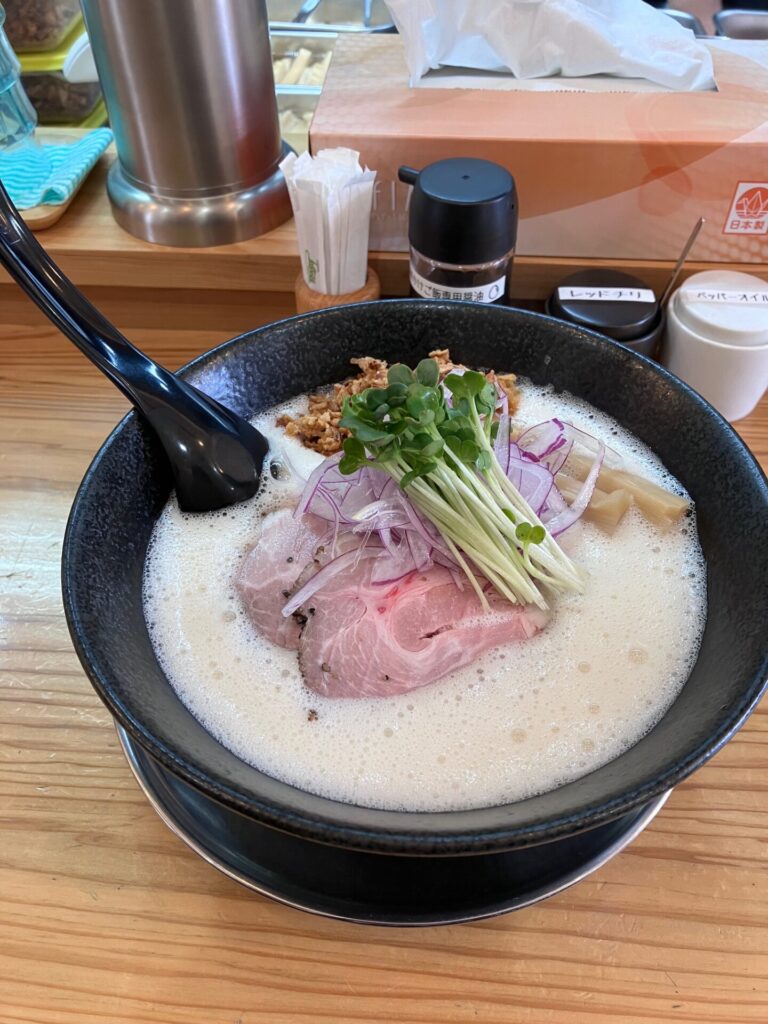 鶏塩泡そばはスープはクリーミーでラーメンって感じがしません!