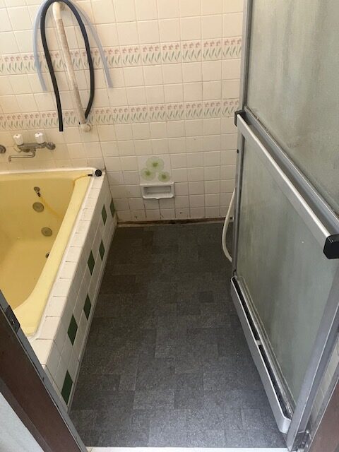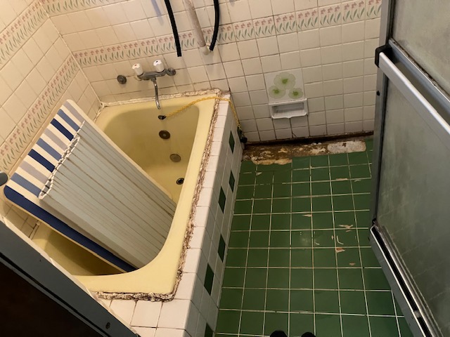壁タイルは高圧洗浄で洗い流し、浴槽はパッキンをやり替えただけで、利用可能です。