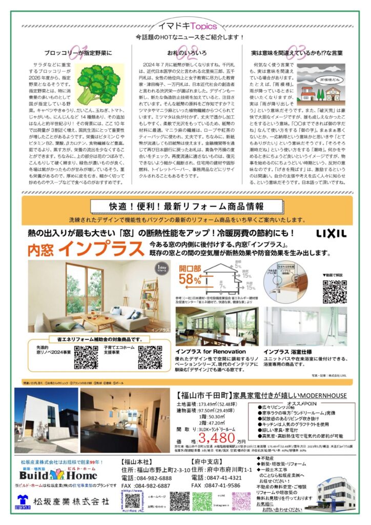 裏面には今話題のホットなニュースや最新リフォーム商品をご紹介しております。