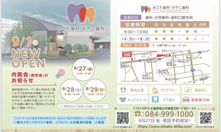 弊社が建築協力させていただきました、「みさか歯科・おやこ歯科」の内覧会が8月27日から29日までの3日間開催されます。