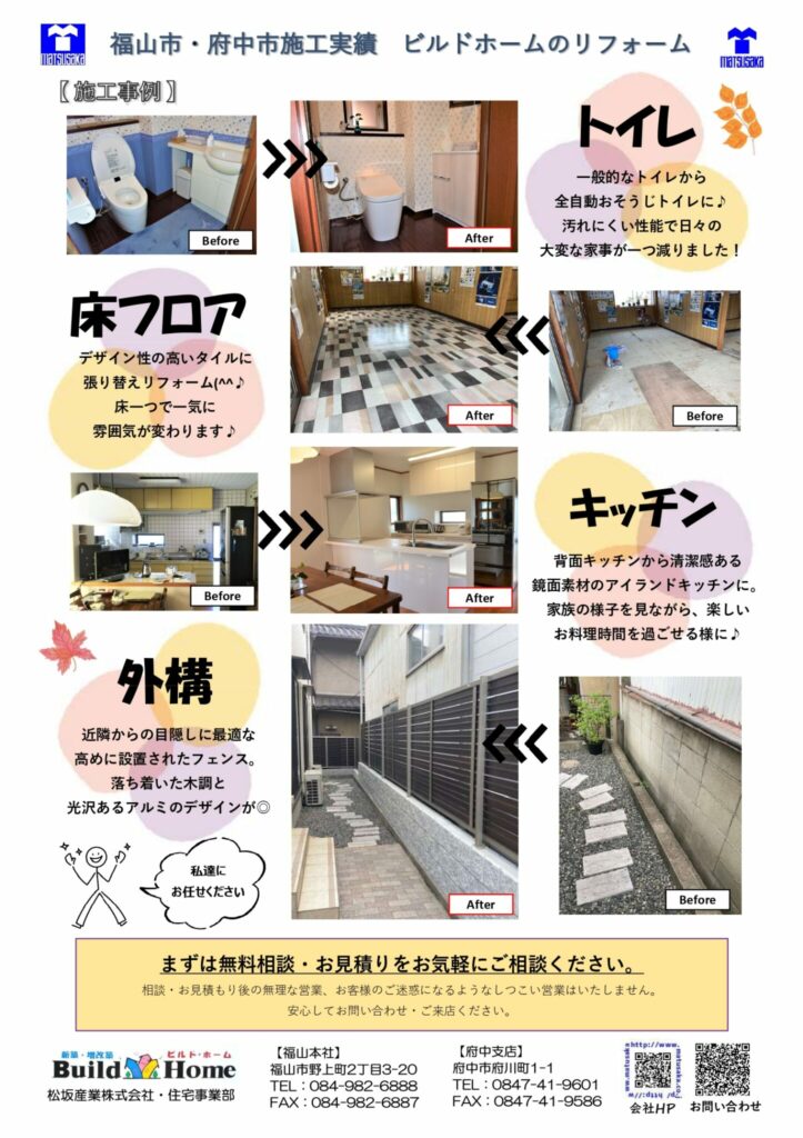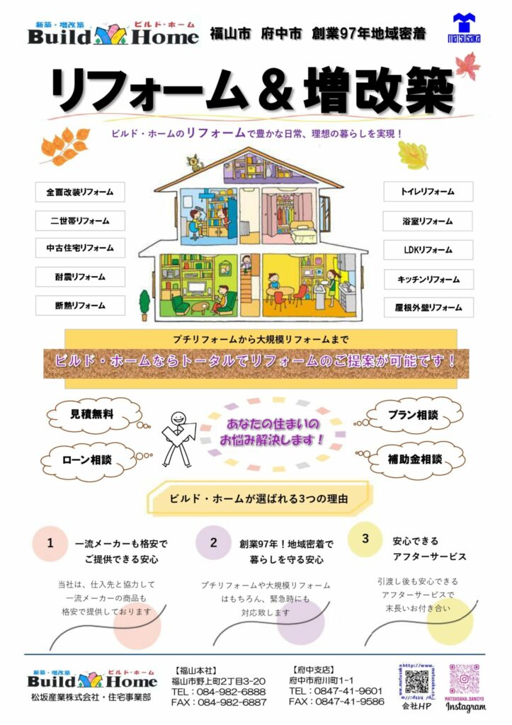 10月号は秋バージョンのリフォーム&増改築チラシを作成いたしました♪