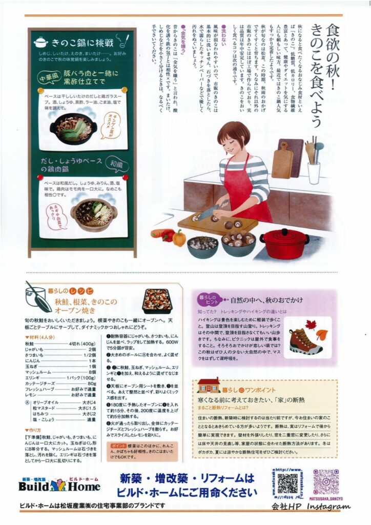 【2022年秋号】では、在宅ワークでのIT情報や、きのこ料理の献立などが掲載されています。
