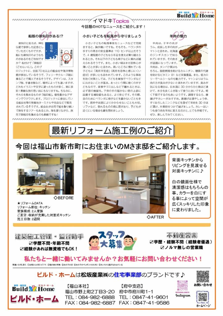 松坂産業では毎月リフォームや不動産に関するチラシを作成、配布しております。