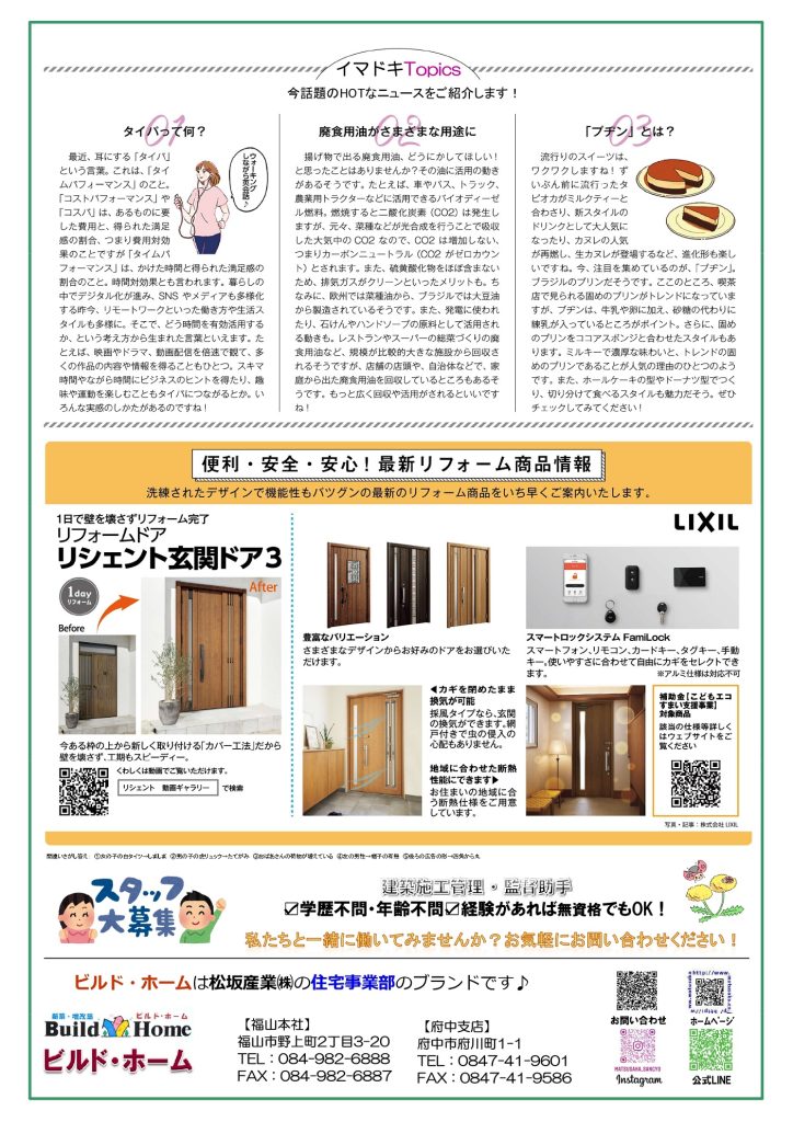 裏面には今話題のホットなニュースや玄関リフォーム商品をご紹介しております。