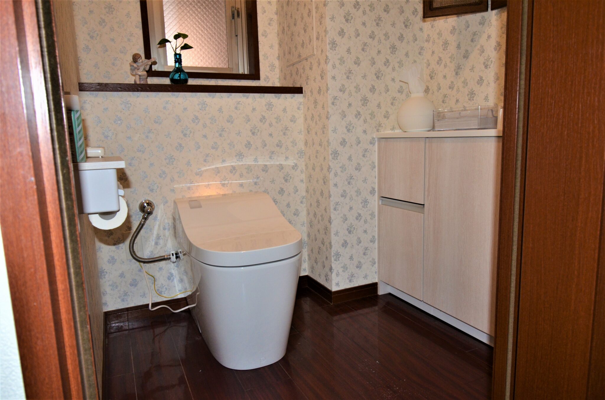 こちらの製品は少ない水で一気に流しきるので、節水ができますし、1990年頃のトイレより消費電力量を約50%カット。年間約4,500円も節電します。
