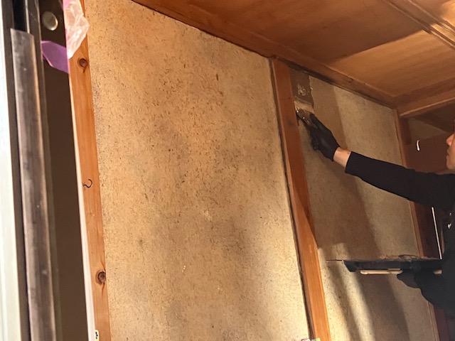 経年劣化により綿壁が剥がれ落ちだしたので、人が集まるお盆までに、綺麗に直しほしい。
