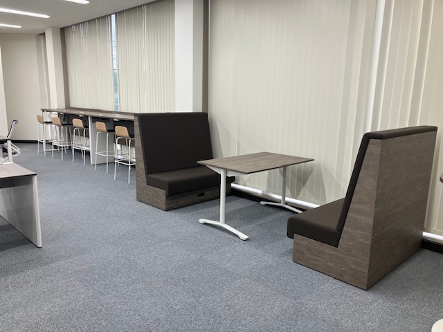 今回のリフォームでも、外部からの開放的な空間イメージを損なわないよう工夫し、パーティションもガラスを多様化し、光の入る開放的な明るい空間を実現しました。