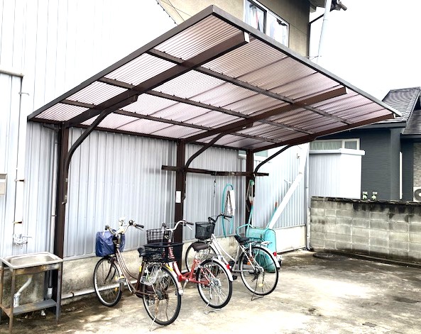 サイクルポートのメリットは、自転車や原付バイクを雨や雪、鳥の糞から守れます。お子様世帯では、自転車に子供を乗せる際に雨に濡れることがないです。