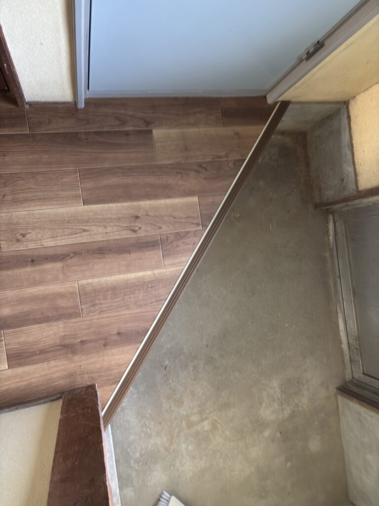 フワフワしていた廊下や住居部分の床全般を、足腰への負担が少ない、クッションフロアに全て貼替えました。